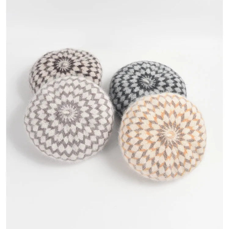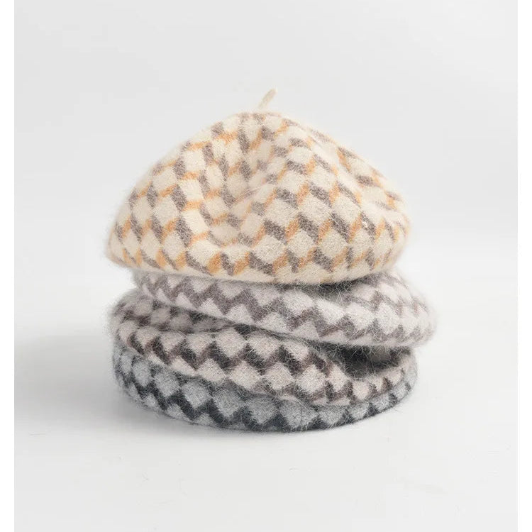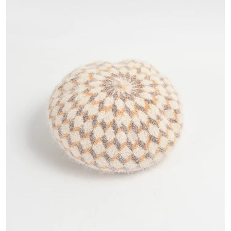 Lana y dibujos geométricos para este modelo de boina, pensado para los amantes de este complemento que nunca pasa de moda.