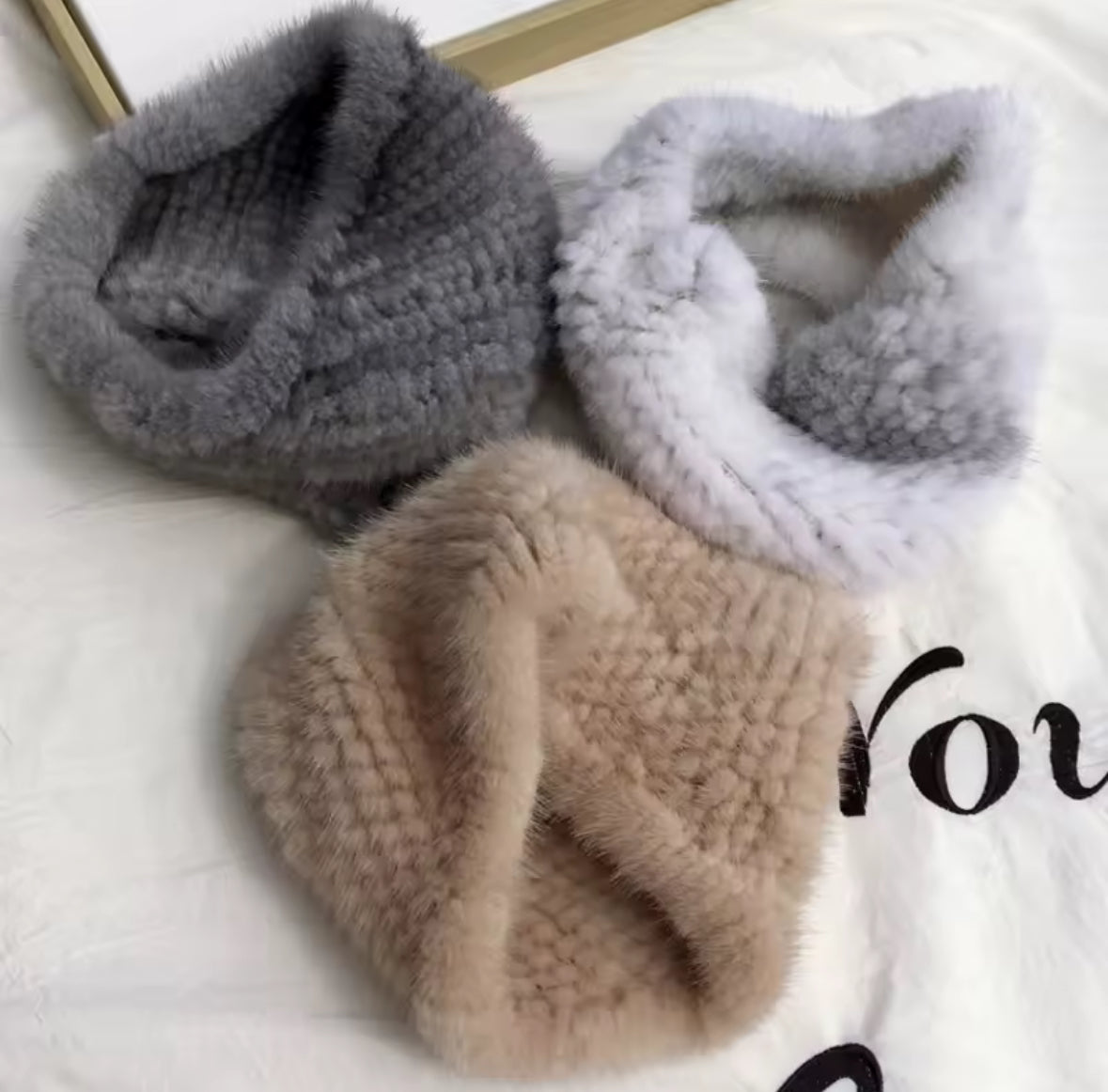 Cuello de piel de visón trenzado. Piel de visón 100%: Cuello elástico.